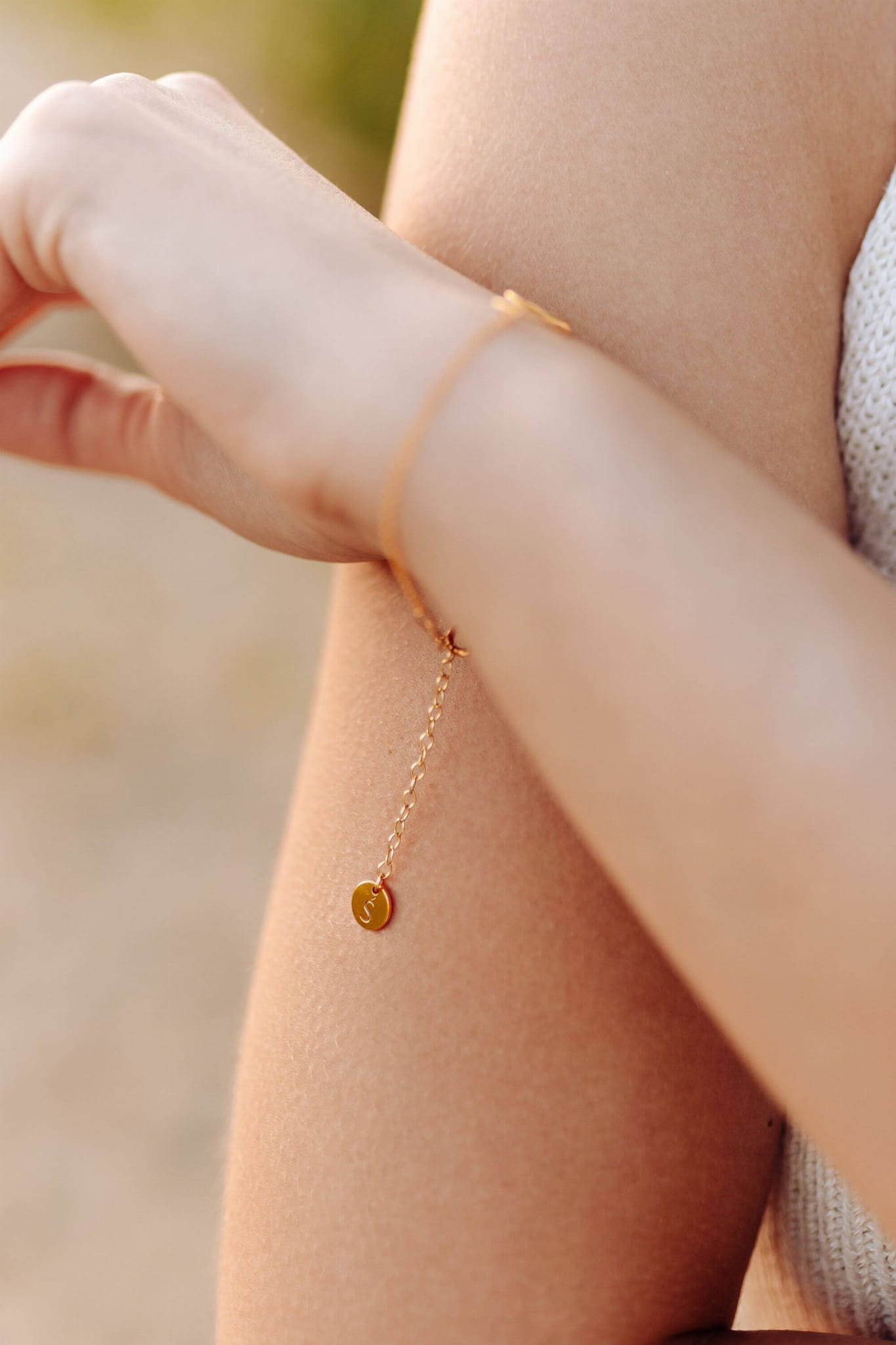 Subtelny symbol świadkowania: na końcówce bransoletki widnieje zawieszka z literą "Ś" na pamiątkę świadkowania.