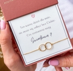 Bransoletka Circle of Love dwa połączone kółka na łańcuszku, srebrna pozłacana I Bransoletka dla świadkowej: Czy zostaniesz moją świadkową?