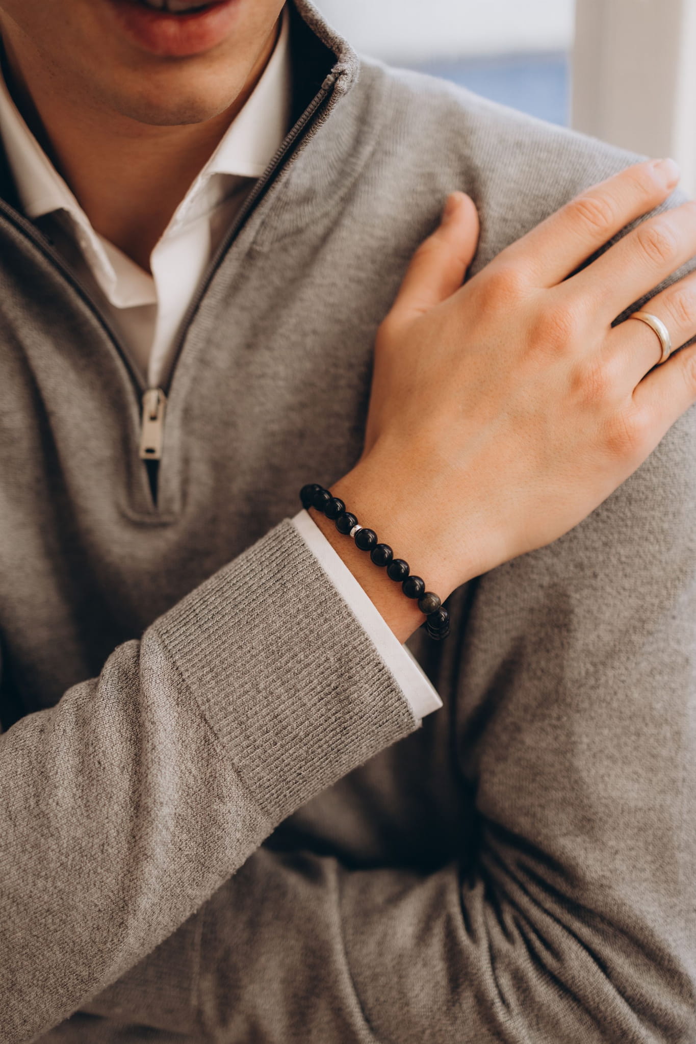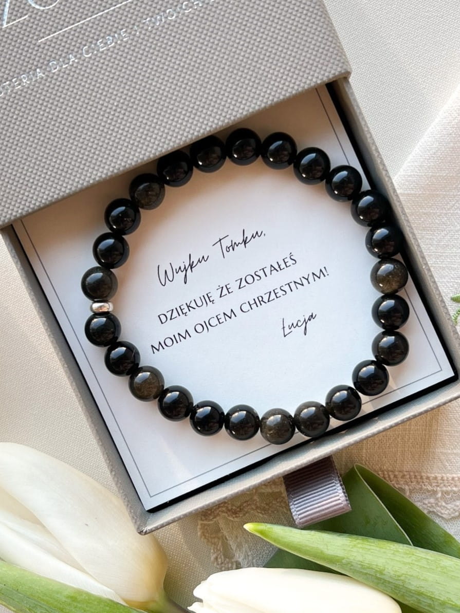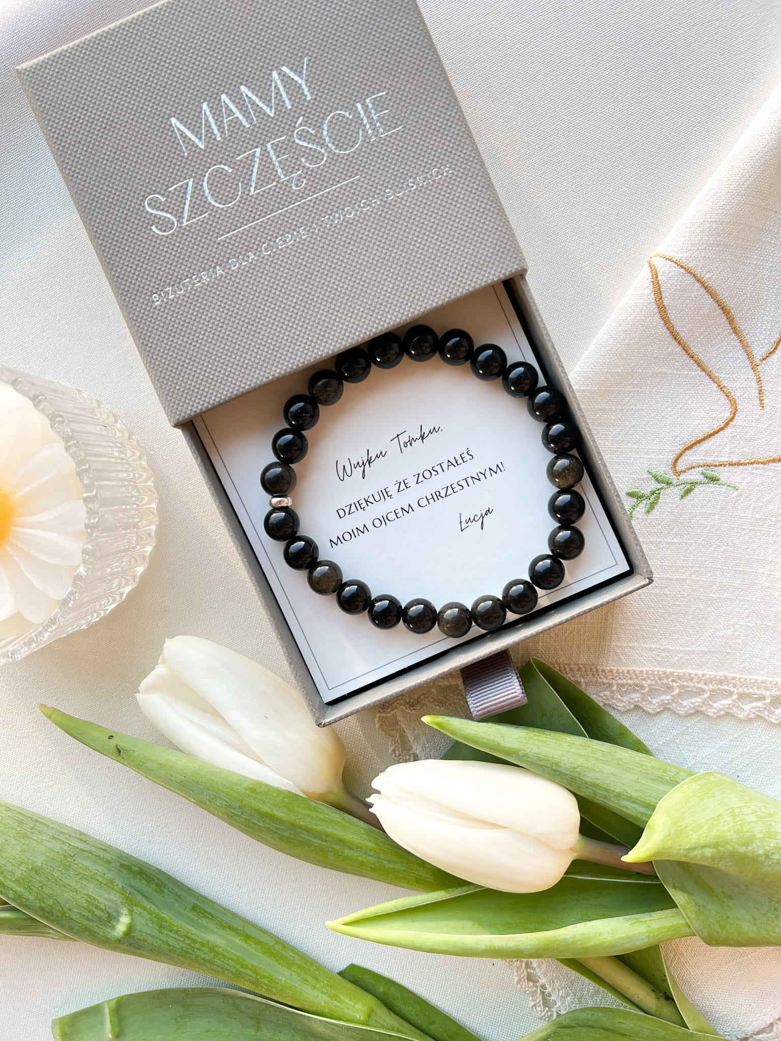 Bransoletka Obsydian I Męska bransoletka z czarnych kamieni naturalnych I Prezent dla Chrzestnego na podziękowanie lub zapytanie