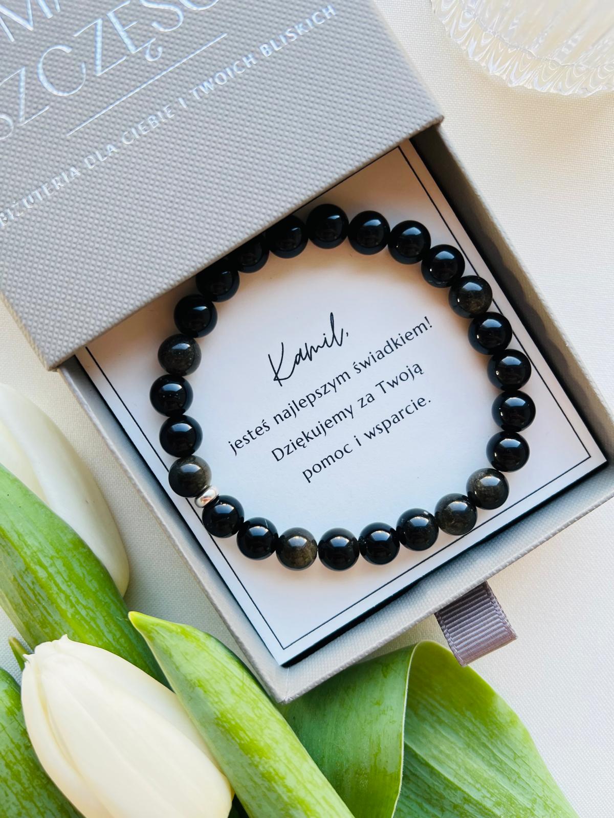 Bransoletka Obsydian I Męska bransoletka z czarnych kamieni naturalnych I Prezent dla świadka na podziękowanie lub zapytanie