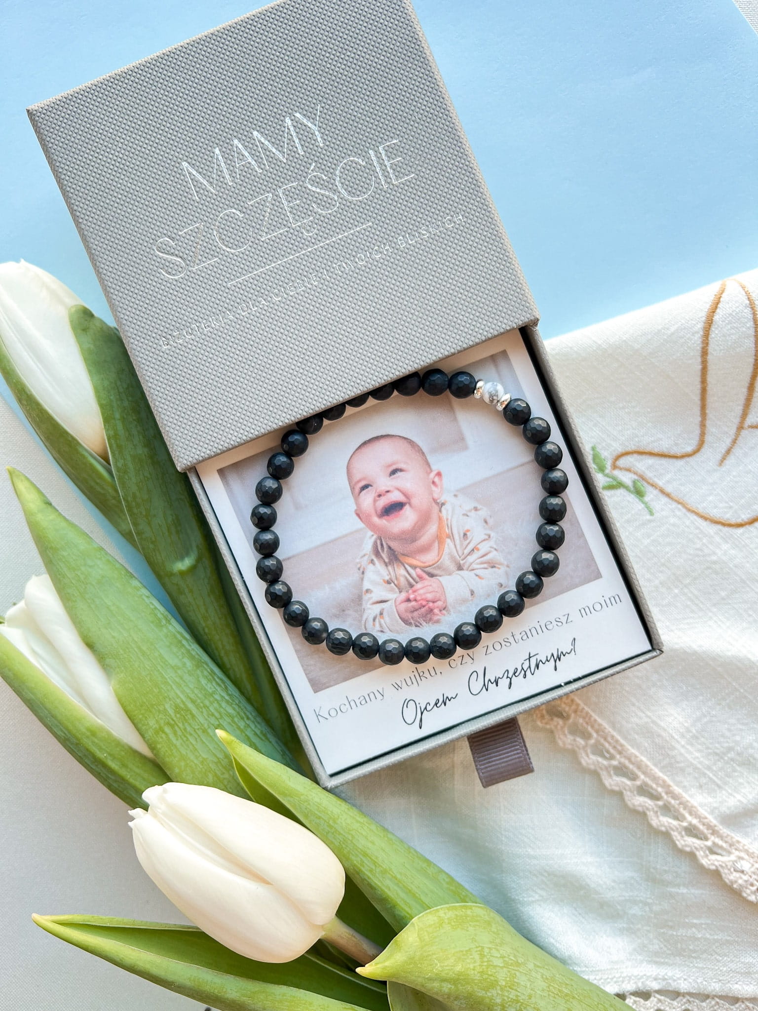 Pamiątka na lata – bransoletka, wykonana z wysokiej jakości materiałów, kamieni naturalnych i srebra próby 925 jest trwała i wygodna w noszeniu, co sprawia, że stanie się ulubionym elementem garderoby, a także sentymentalnym wspomnieniem po tak ważnym wydarzeniu jakim jest Chrzest Święty, przypominając Ojcu Chrzestnemu o jego roli i szczególnej więzi z chrześniakiem.