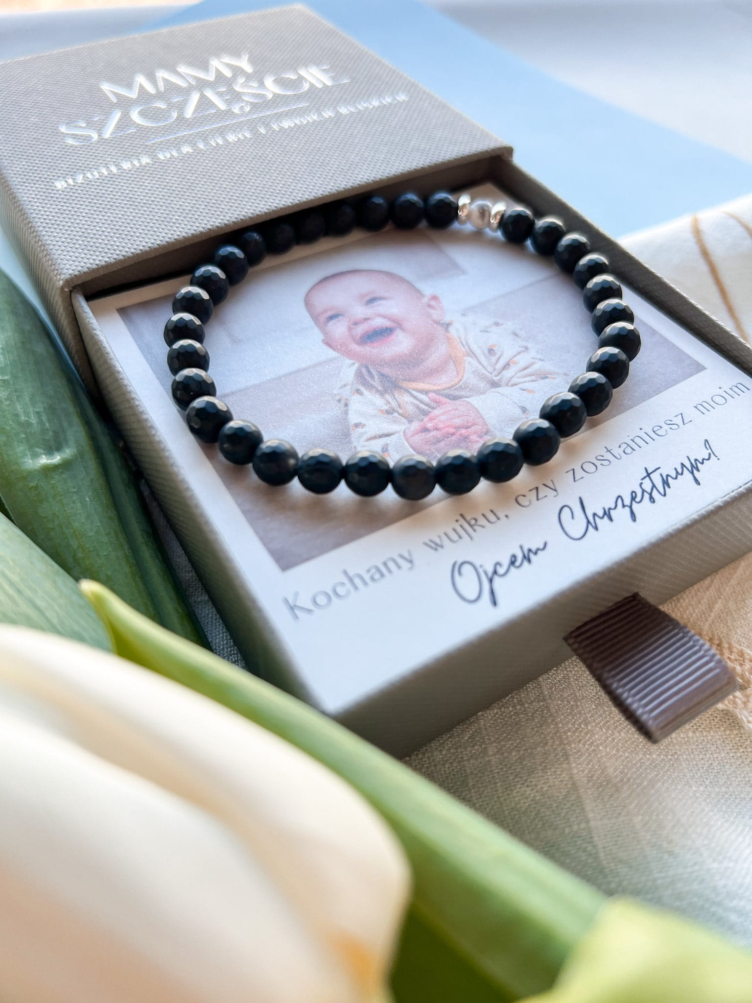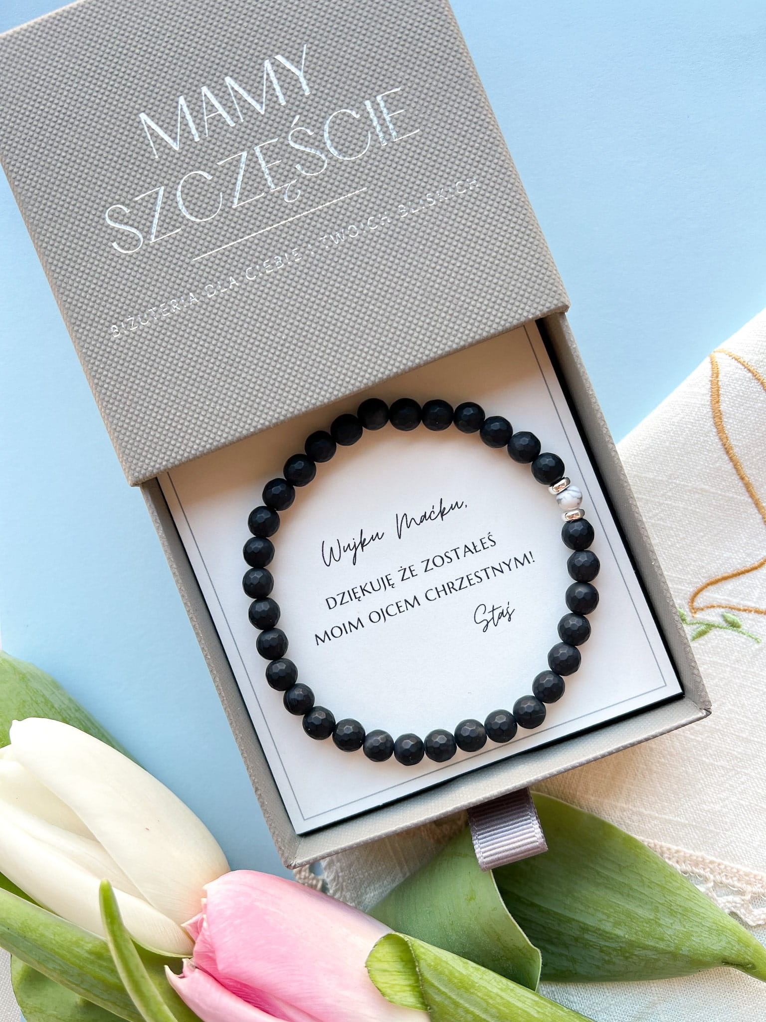 Bransoletka ręcznie robiona z personalizowaną dedykacją to doskonały pomysł na prezent dla Ojca Chrzestnego, ponieważ łączy w sobie unikalność, emocjonalną wartość i styl.
