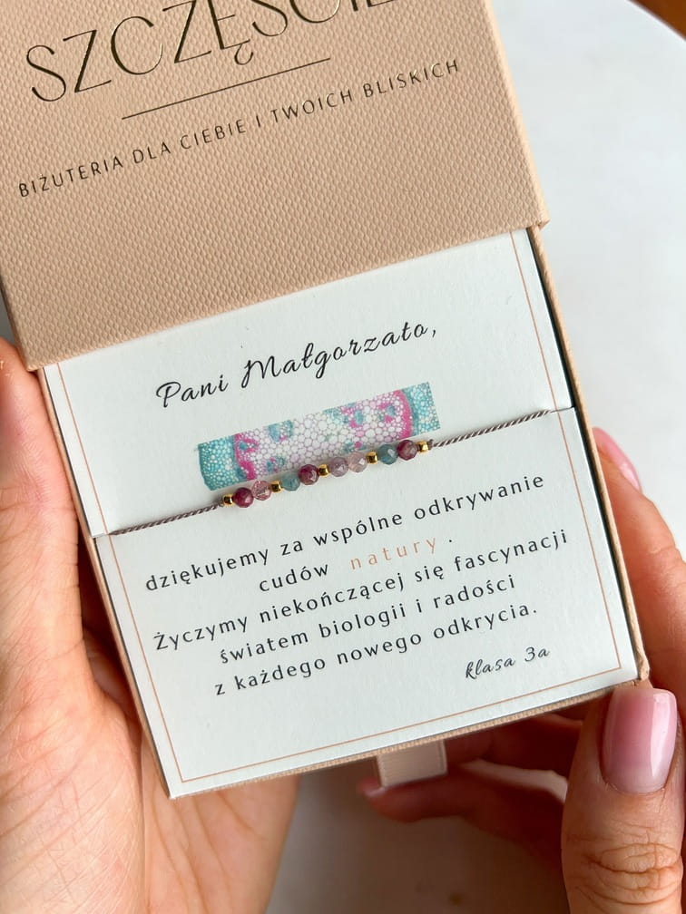 Dołącz do bransoletki personalizowaną dedykację co sprawi, że prezent dla nauczycielki Biologii będzie jeszcze bardziej wyjątkowy i oryginalny.
