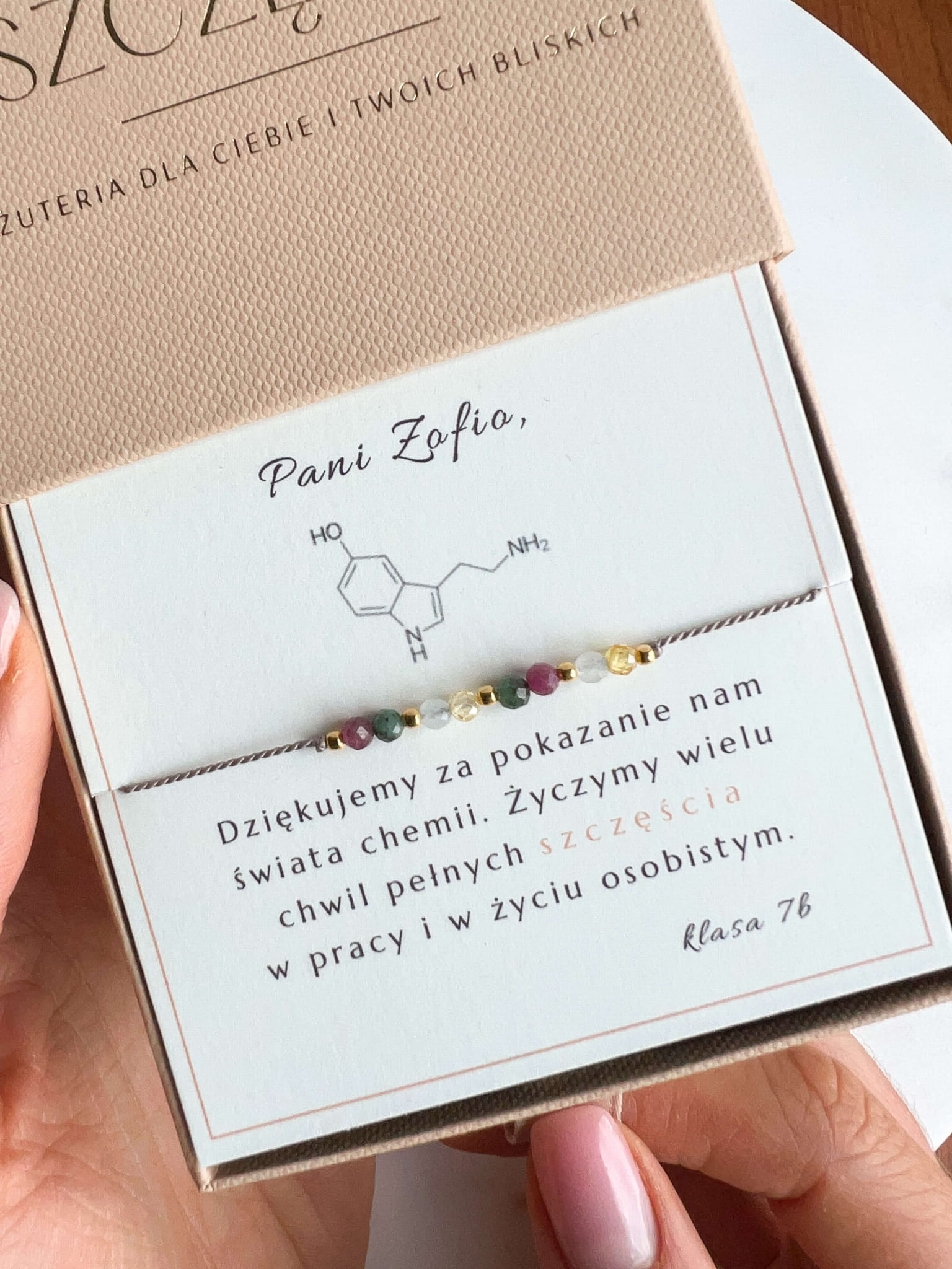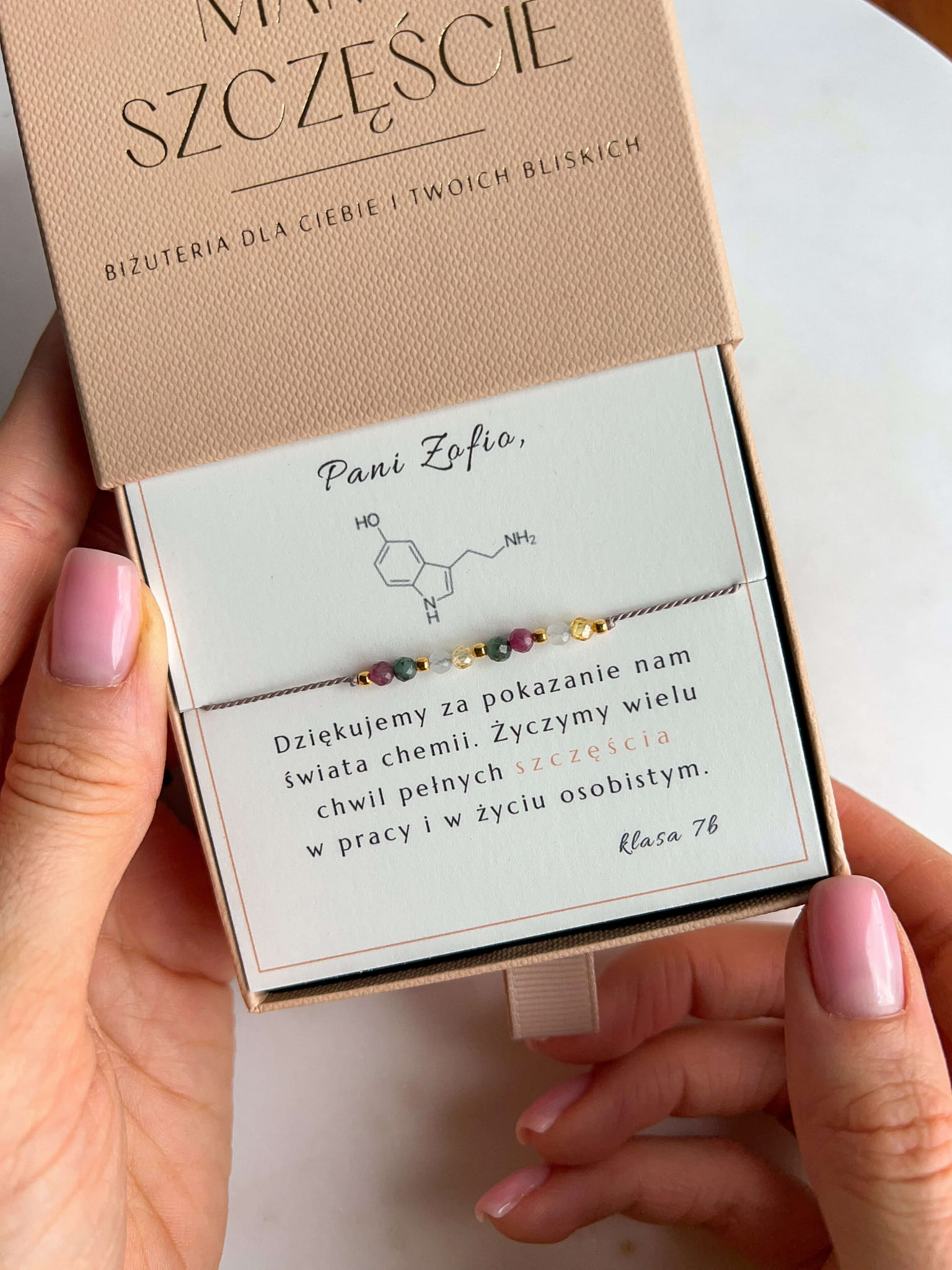 Dołącz do bransoletki personalizowaną dedykację co sprawi, że prezent dla nauczycielki Chemii będzie jeszcze bardziej wyjątkowy i oryginalny.