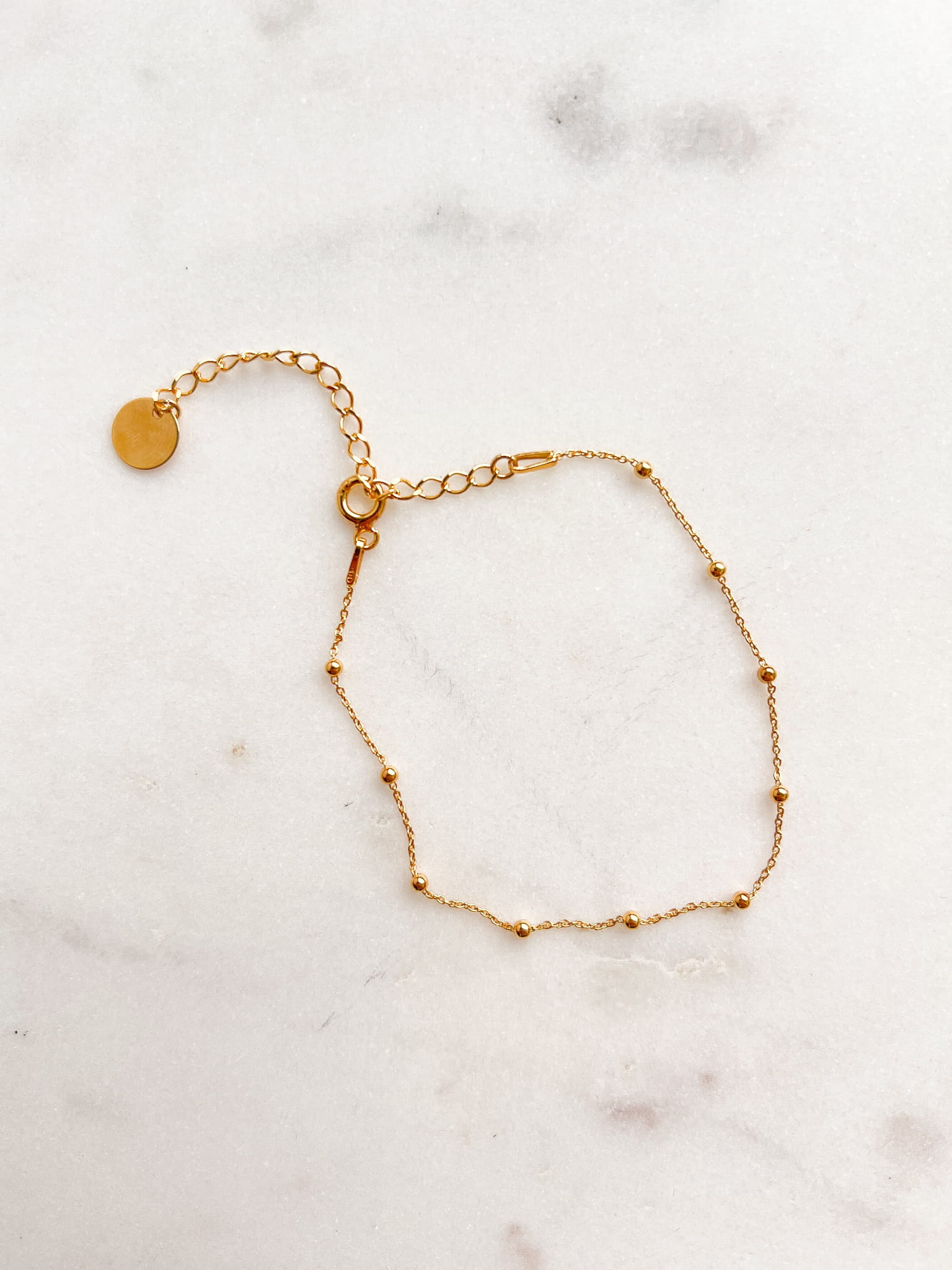 Minimalistyczna bransoletka łańcuszek z kuleczkami, wykonany z pozłacanego srebra.