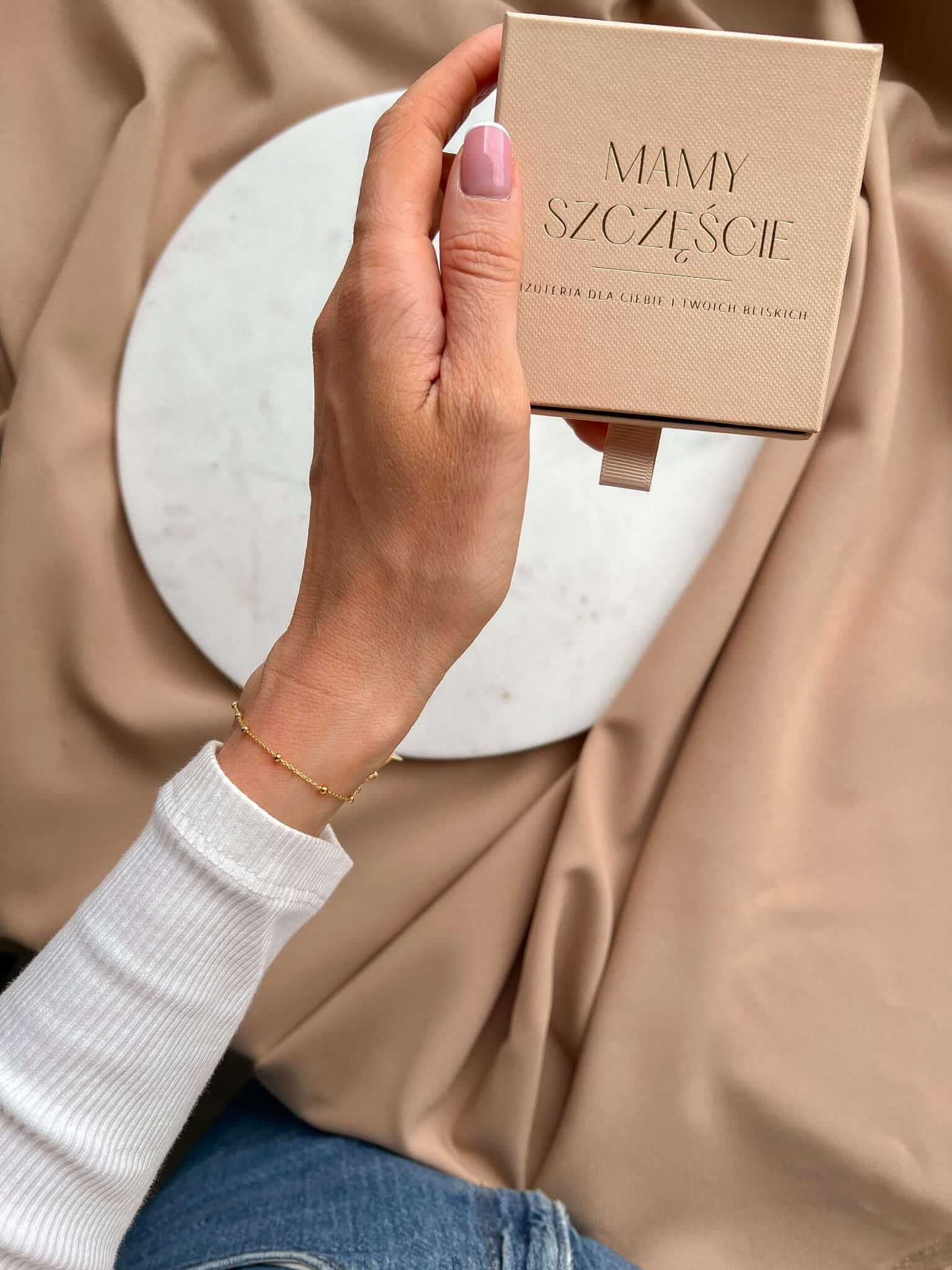 Bransoletka łańcuszek Ankier z kuleczkami srebrna pozłacana I Personalizowany prezent z dedykacją