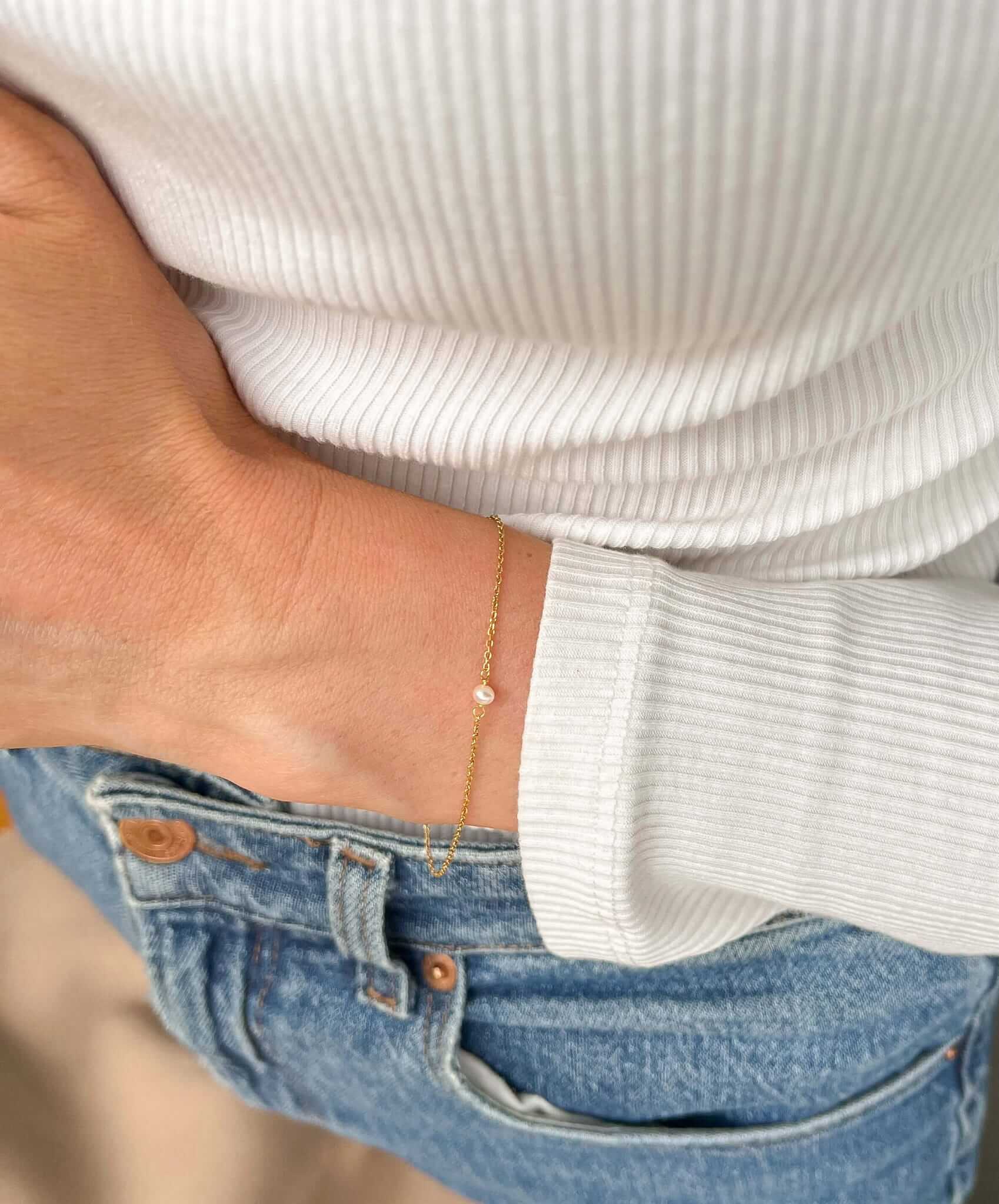 Bransoletka na łańcuszku z perłą srebrna pozłacana Little Pearl I Personalizowany prezent dla Mamy