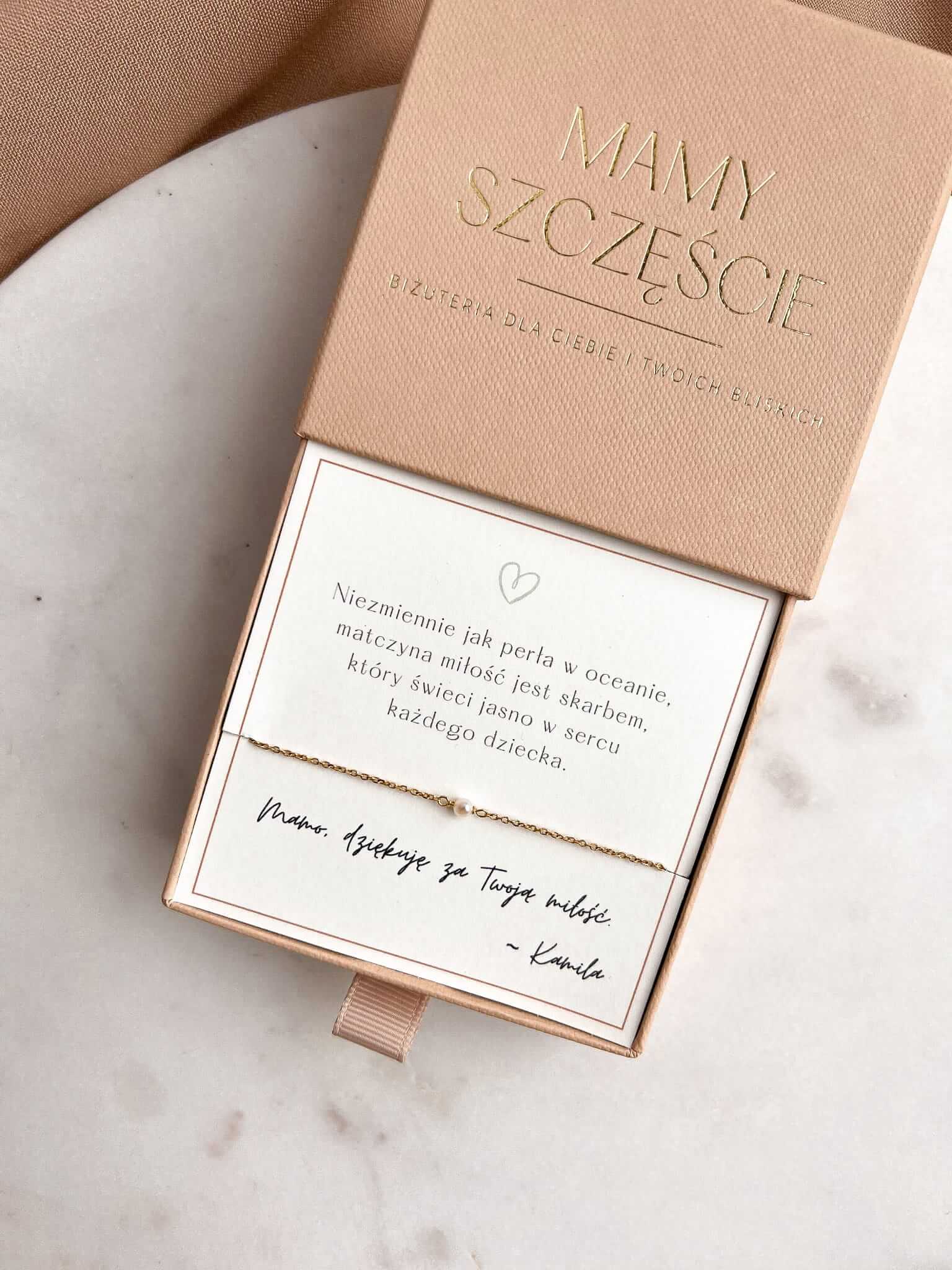 Minimalistyczna bransoletka z uroczą perełką w centrum to delikatny i elegancki dodatek, który sprawia, że każda Mama poczuje się wyjątkowo. Perła symbolizuje piękno, czystą miłość i elegancję.