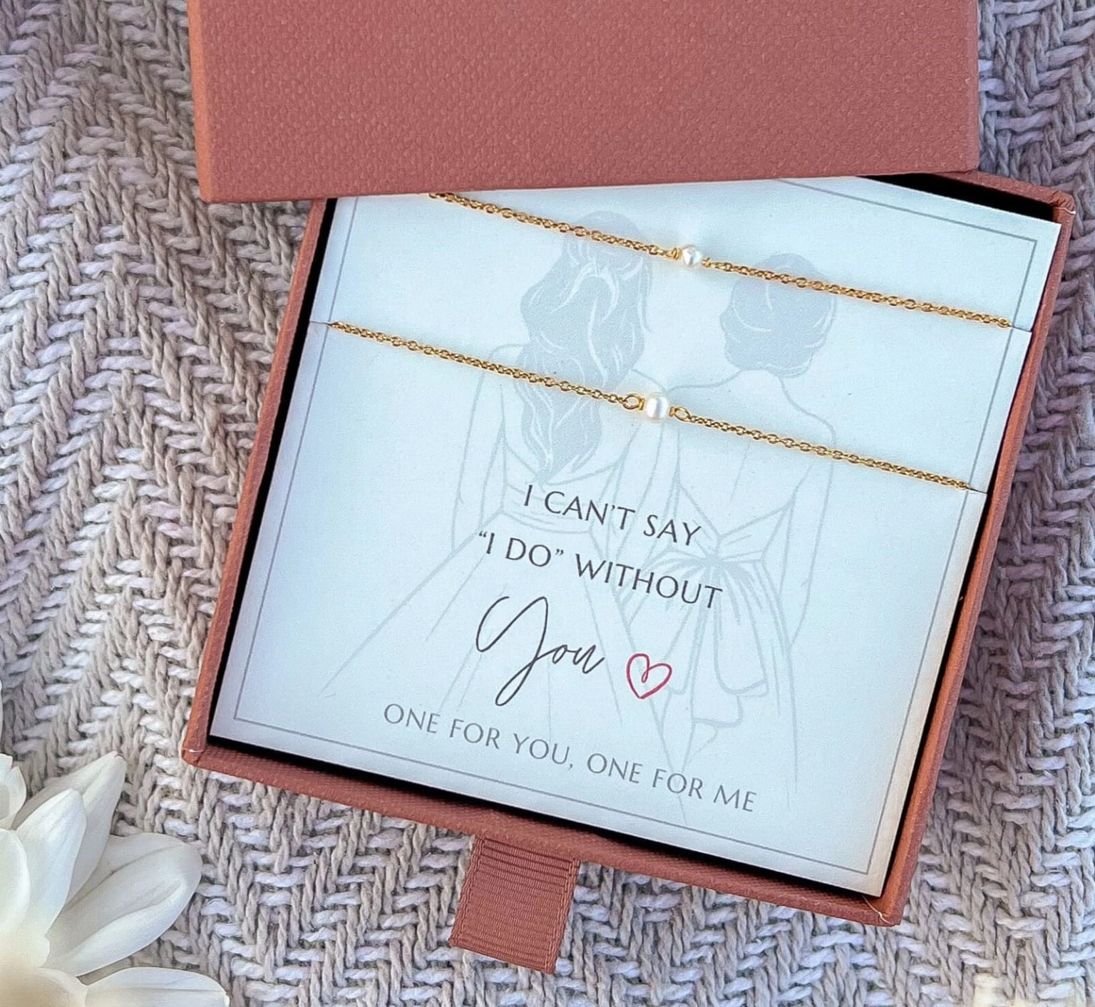 Bransoletki Little Pearl na łańcuszku z perłą srebrna pozłacana I Bransoletka dla świadkowej I can't say I do without you