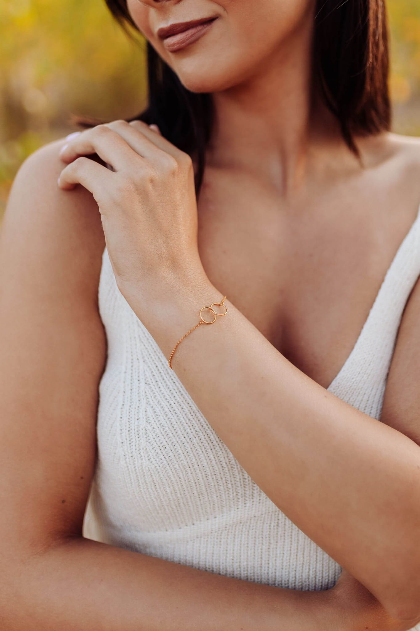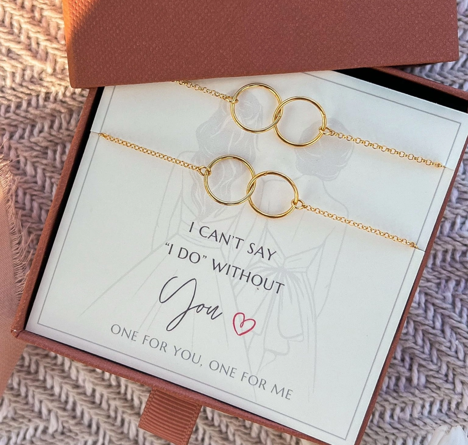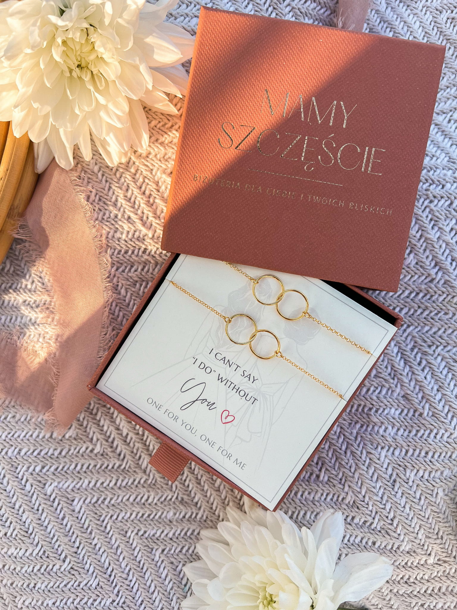 Bransoletki dla Świadkowej Circle of Love dwa połączone kółka na łańcuszku, matchy-matchy, srebrne pozłacane I Pytanie o świadkowanie I Jedna dla Ciebie druga dla mnie