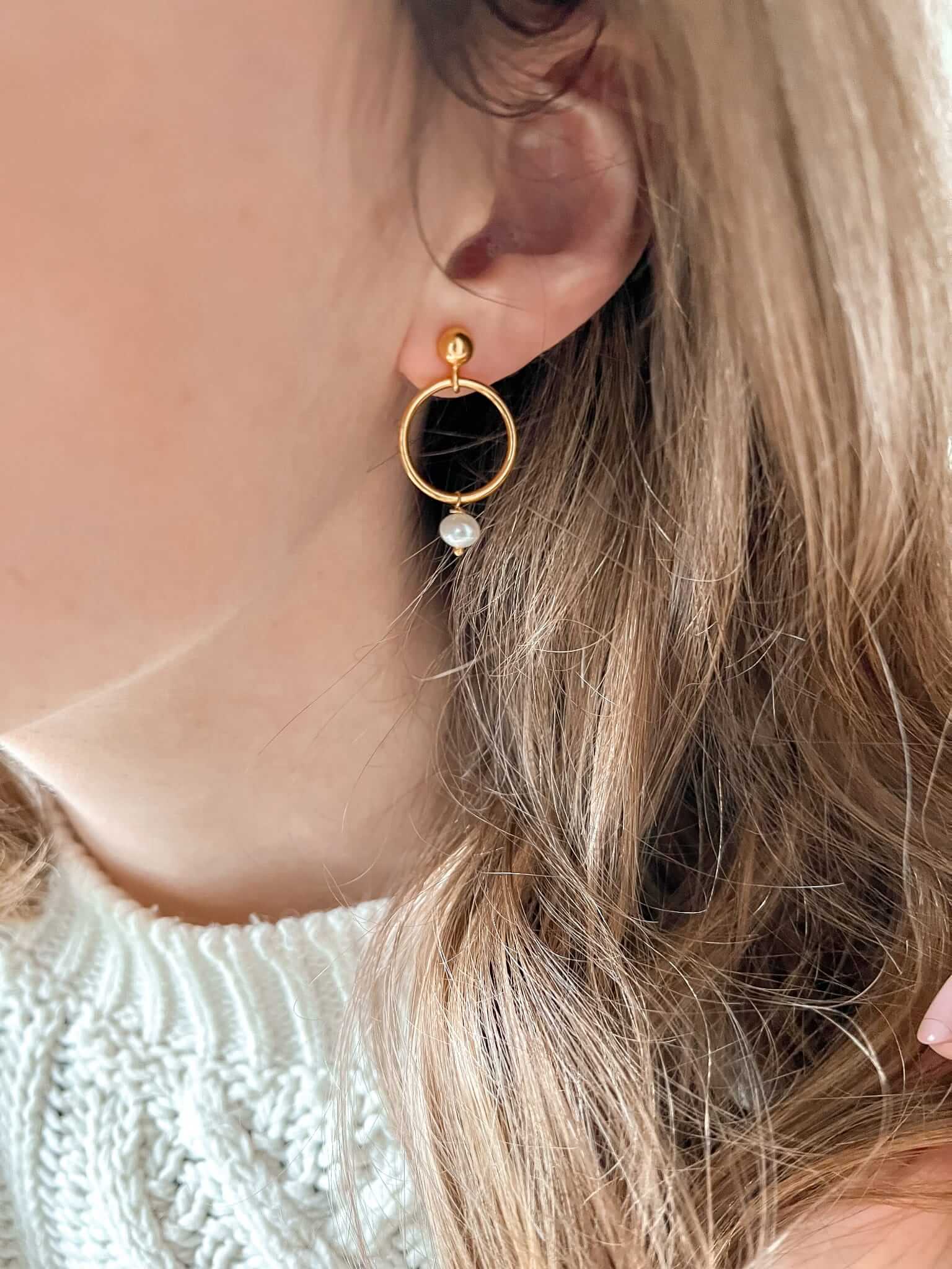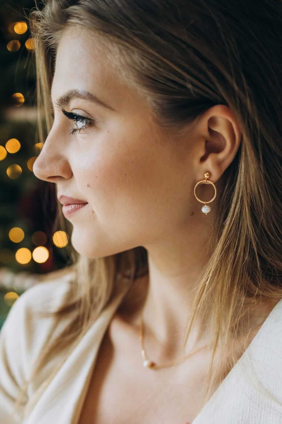 Kolczyki Pretty One złocone srebro, kolczyki koła z perłą I Kolczyki dla Siostry