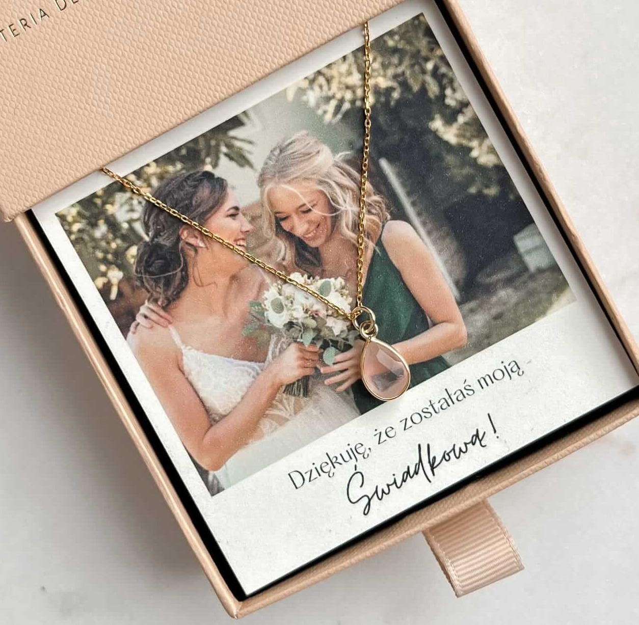 Możliwość dodania do naszyjnika dedykacji i osobistego zdjęcia to naprawdę bardzo wyjątkowy pomysł na prezent dla Świadkowej. Możesz wybrać dedykację, która wyrazi Twoje uczucia w najpiękniejszy sposób i dodać wybrane przez siebie, Wasze ulubione zdjęcie, tworząc tym samym pamiątkę dla bliskich na lata.