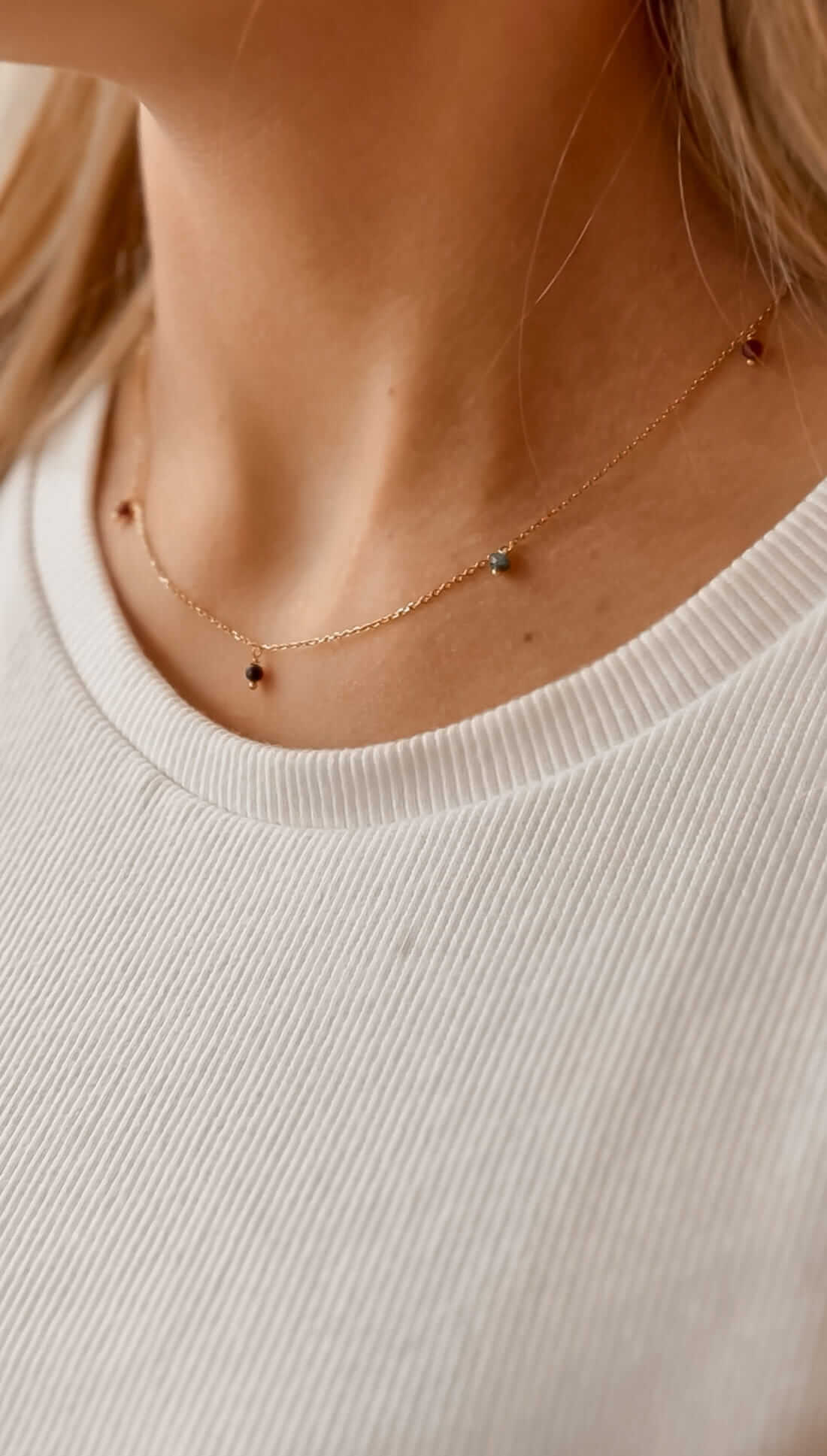 Elegancki i subtelny naszyjnik, który przykuwa wzrok z daleka. Stworzony z kamieni naturalnych, które nadają mu pewnej szlachetności, a jednocześnie bez kłopotu wpasowuje się w klimat letnich sukienek czy krótkich topów.