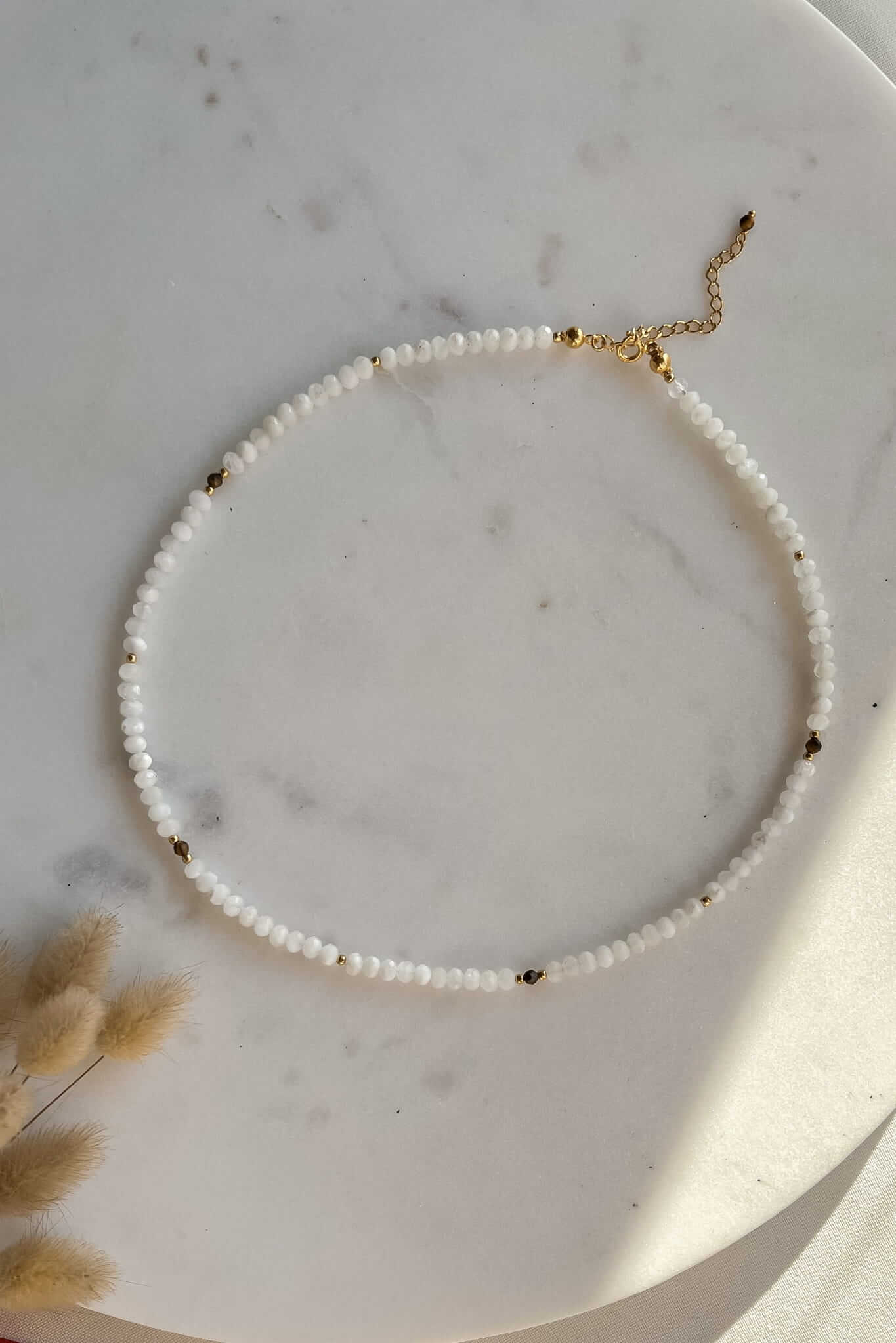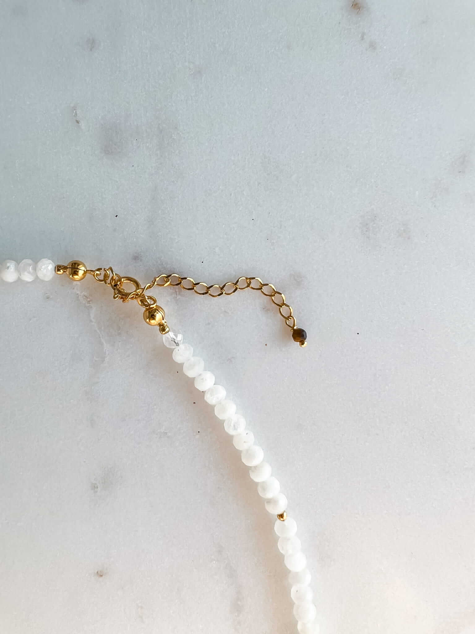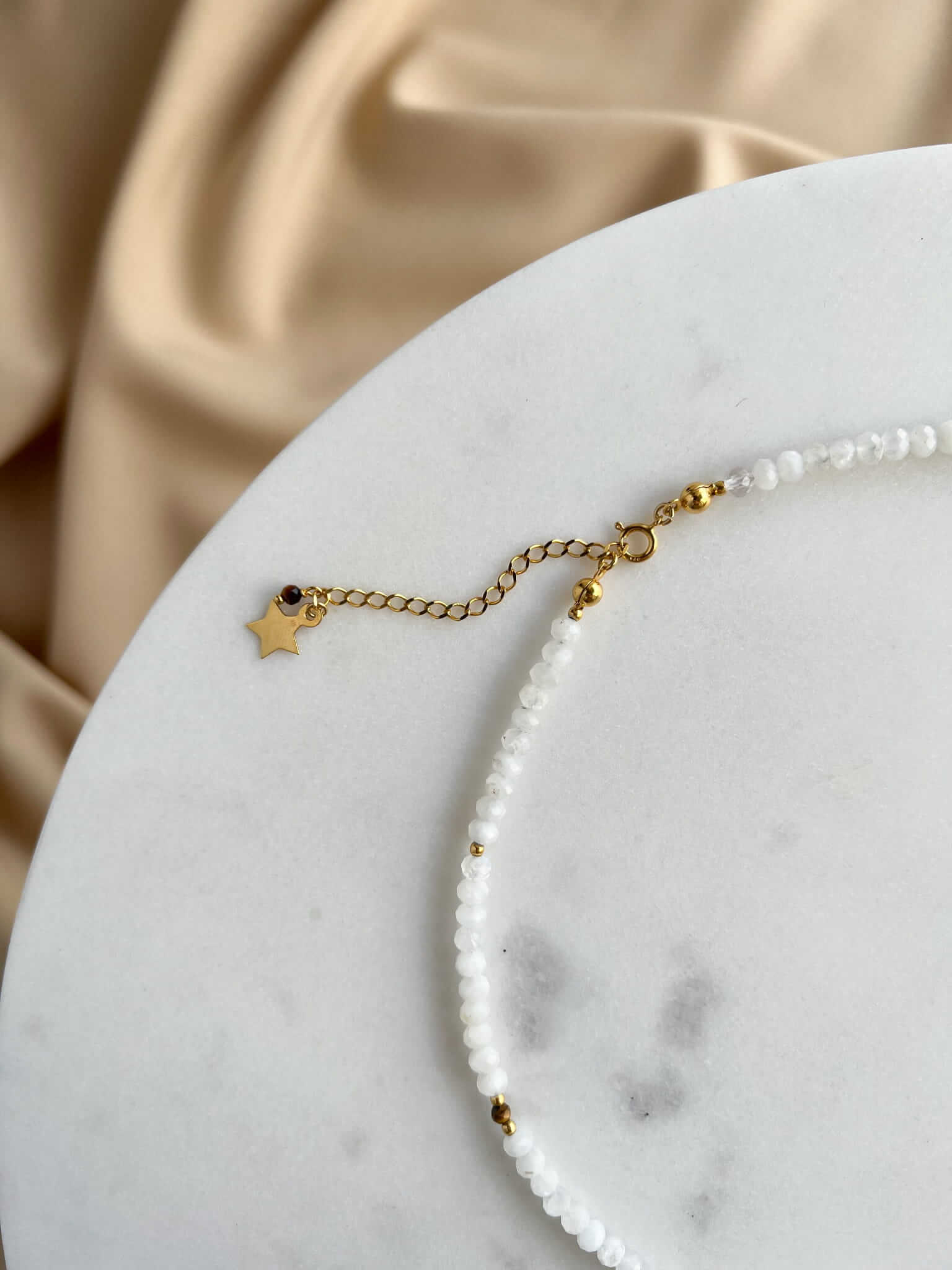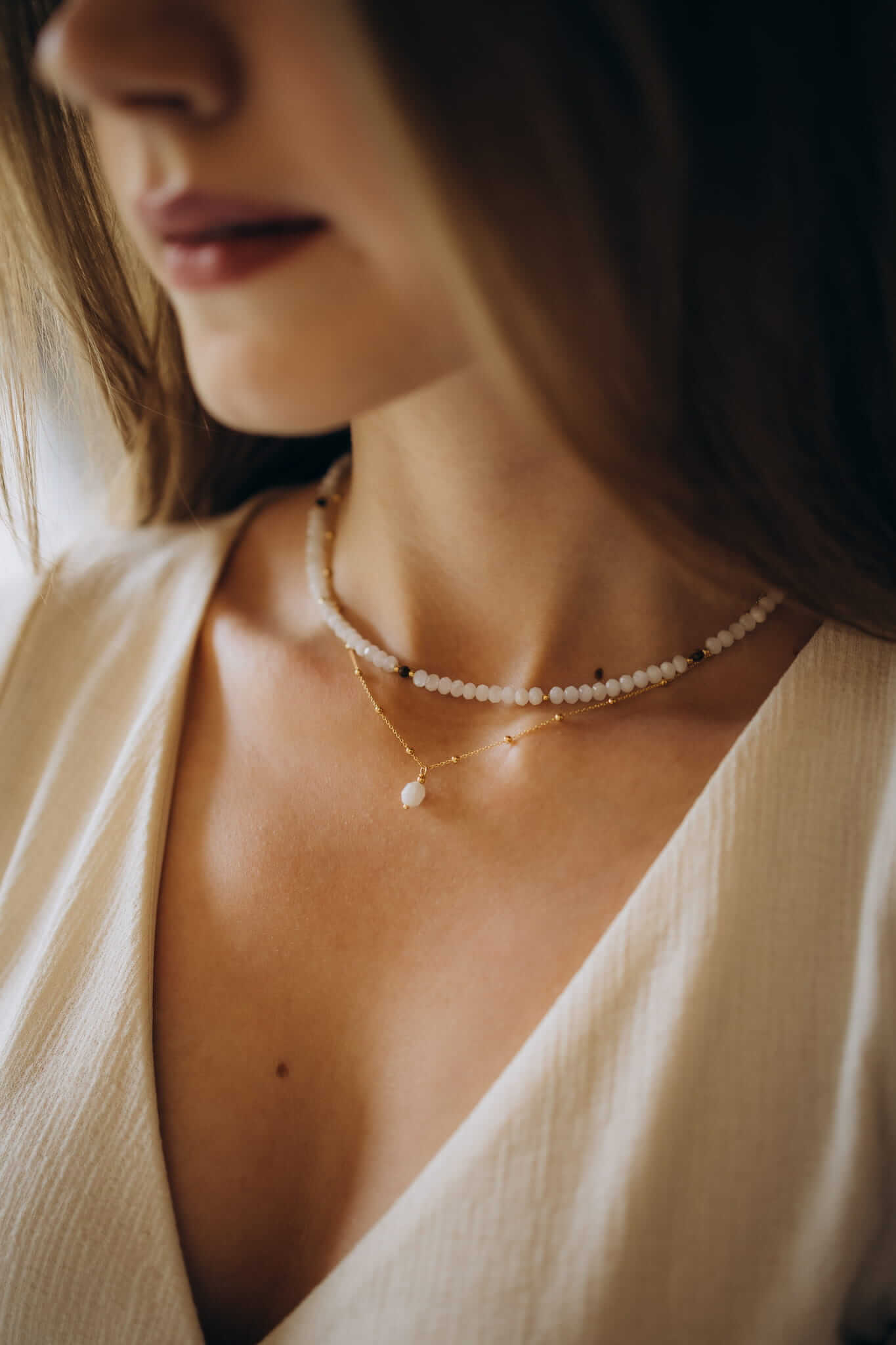 Pierwszy naszyjnik Moonlight to delikatna biżuteria wykonana z naturalnych kamieni księżycowych i tygrysiego oka, stworzona z myślą o relaksującym wieczorze przy świecach, z ulubioną książką w dłoni. Ten wyjątkowy naszyjnik emanuje subtelnością i delikatnością, doskonale pasując do gustu miłośniczek minimalistycznej, ale wyjątkowej biżuterii.